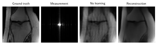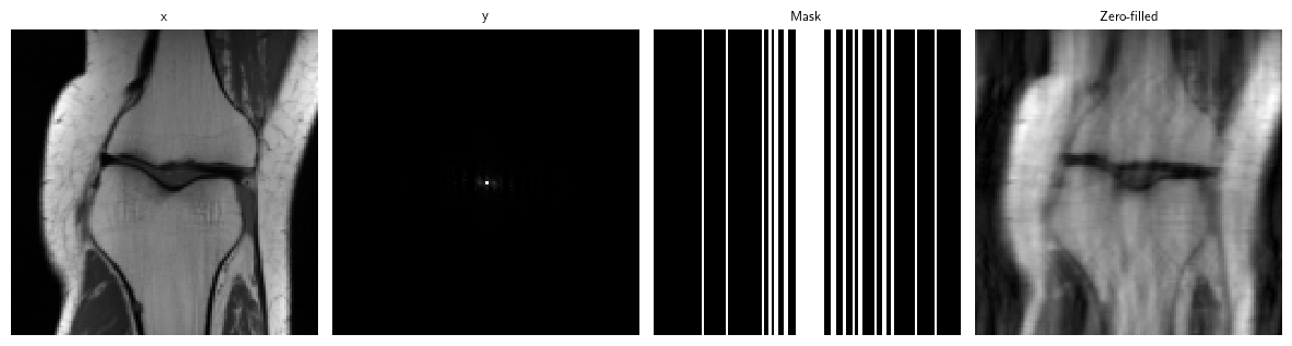 We train with a custom FastMRI subset of 973 images created using deepinv.datasets.FastMRISliceDataset.save_simple_dataset (download here), and load it with deepinv.datasets.SimpleFastMRISliceDataset.